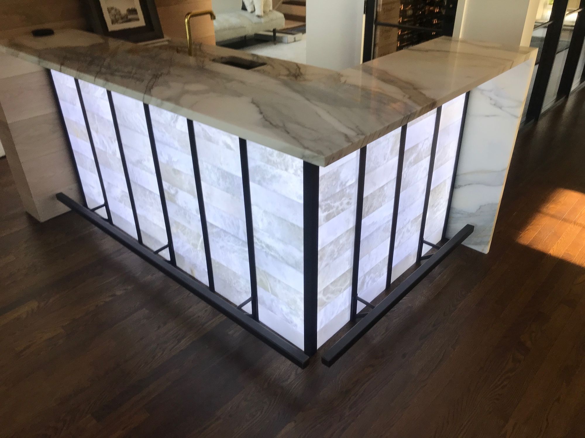 Foot rail and strapping for alabaster bar